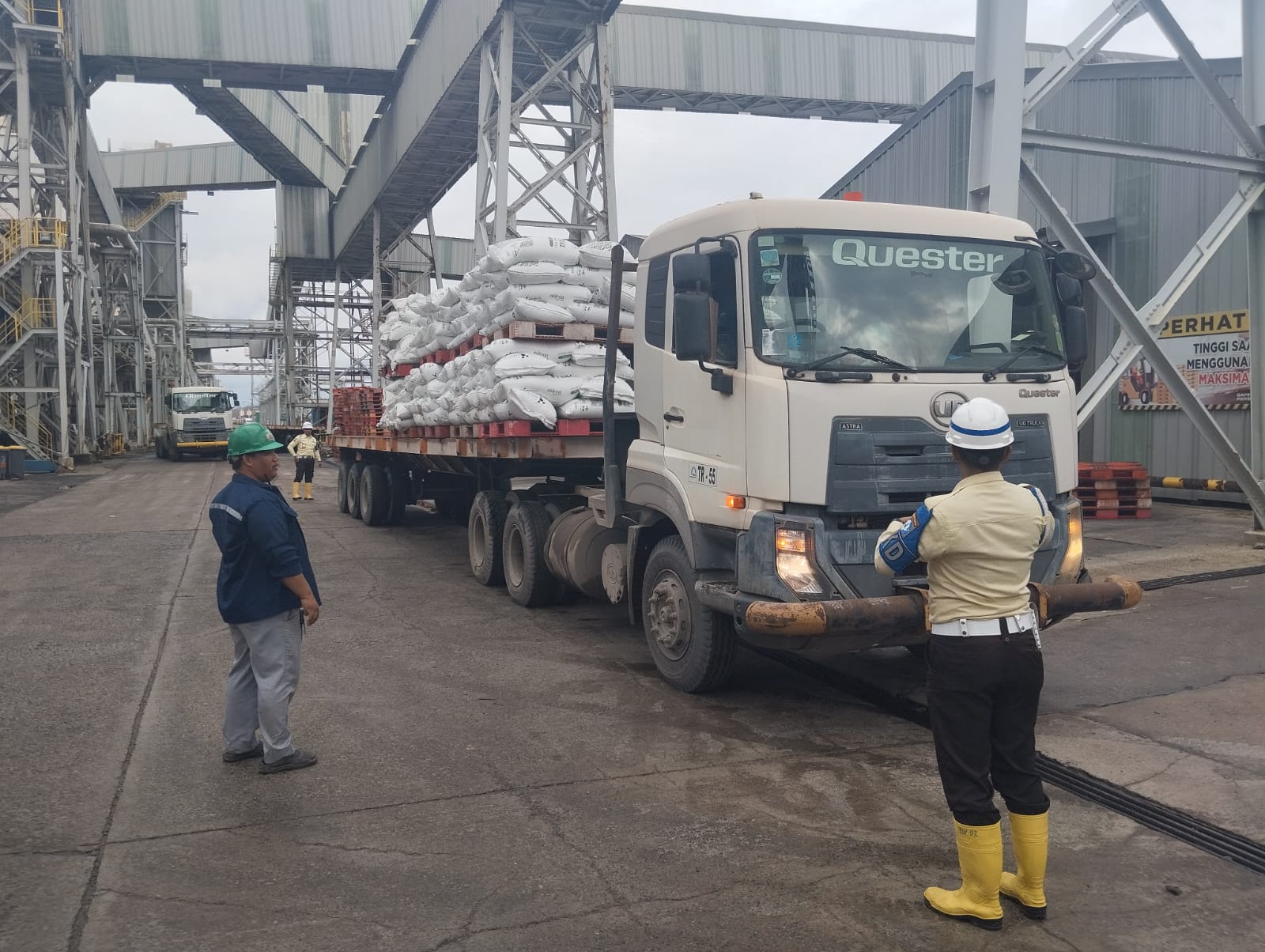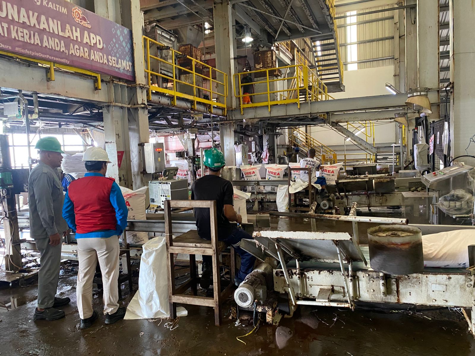 Pengemasan bahan produksi dari bentuk curah menjadi kemasan karung untuk mempermudah proses penyimpanan dan distribusi.
